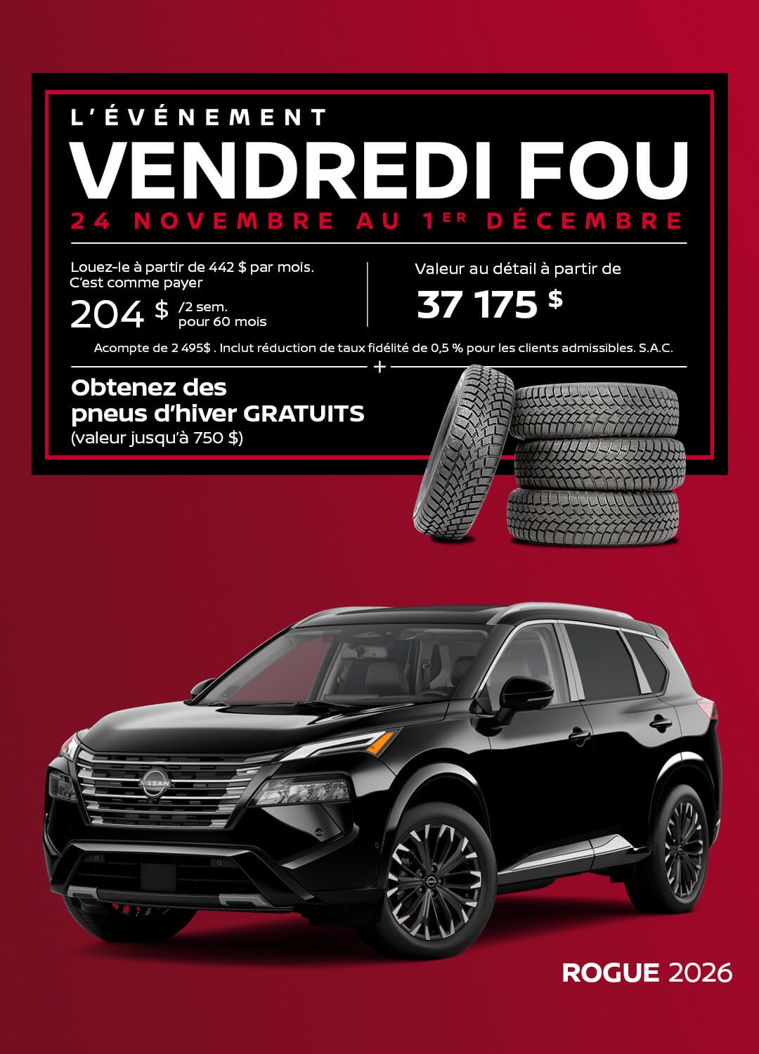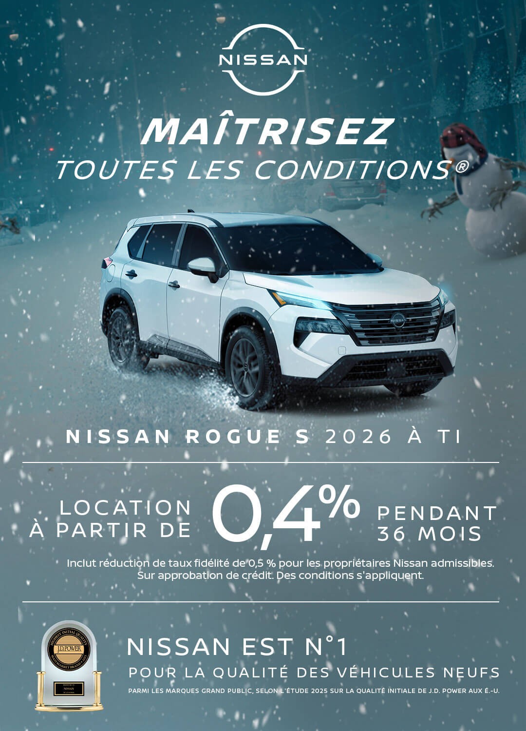 De plus, profitez de nos avantageuses promotions et de nos options de financement Nissan, ou encore de nos différents termes de location Nissan!