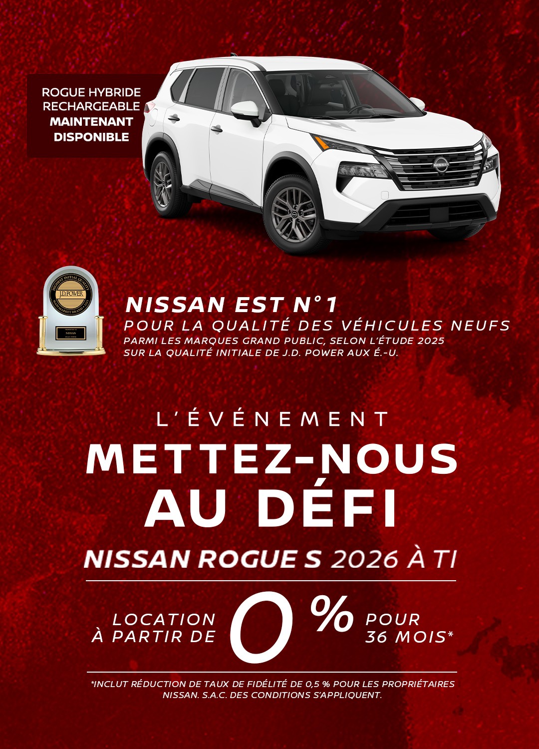 De plus, profitez de nos avantageuses promotions et de nos options de financement Nissan, ou encore de nos différents termes de location Nissan!