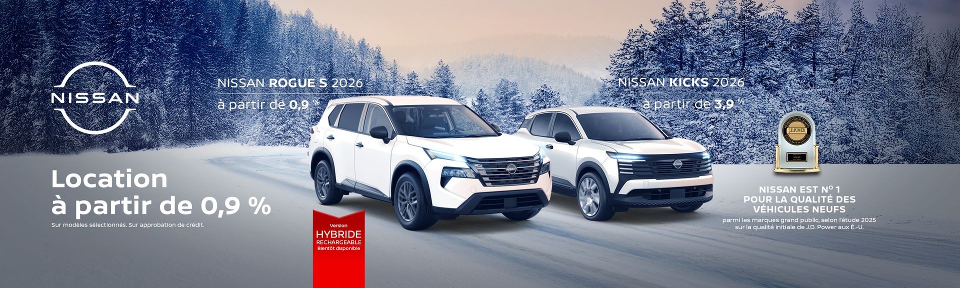 Si vous êtes à la recherche d’un VUS Nissan, vous aurez l’embarras du choix parmi nos différents modèles neufs et d’occasion. Du compact mais polyvalent Kicks neuf au populaire Nissan Rogue 2023, en passant par le spacieux Pathfinder 2024 et ses 3 rangées de sièges, la gamme de VUS que vous trouverez chez votre concessionnaire Nissan répondra aux besoins de chaque acheteur. De plus, ne manquez pas de jeter un œil à nos Rogue usagés et à nos Qashqai d’occasion!