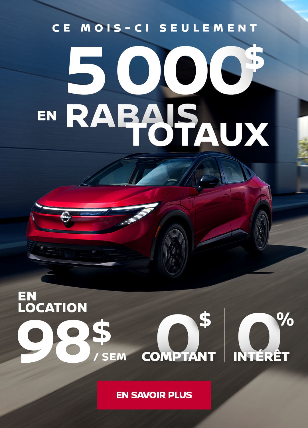 Afin de vous faire bénéficier de rabais supplémentaires, votre concessionnaire Granby vous présente les offres du moment chez Nissan Granby, à ne pas manquer.